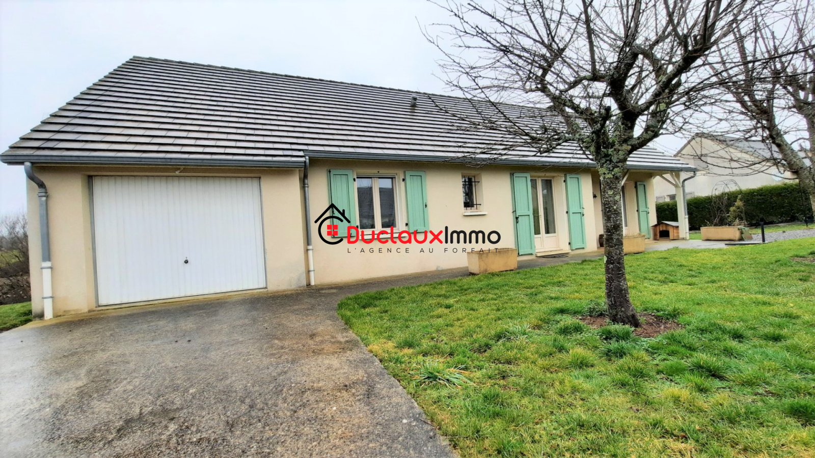 En exclusivité. Située à 10Km à l'Ouest d'Aurillac, proche des commerces, maison individuelle de plain-pied de 2006 en bon état d'entretien d'une superficie de 95m² habitables environ.