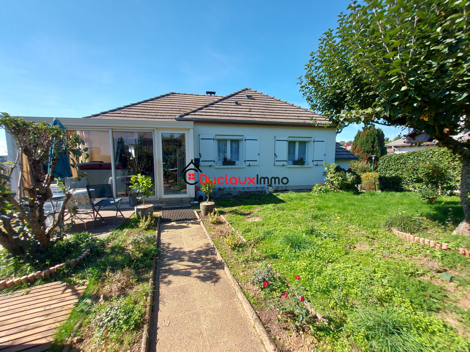 Les fenêtres sont en PVC double vitrage avec des volets roulants électriques.